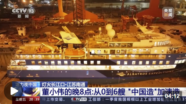 大型邮轮和航空母舰、液化天然气(LNG)船被誉为造船业“皇冠”上的“三颗明珠”,国外垄断技术多年,我国过去没有能力建造,更别说出口。极地探险邮轮自主设计与建造项目,上个月拿下了中国工业大奖。多年前,对于造船设计师董小伟来说,极地探险邮轮的建造出口一度是空白,董小伟带领400多人设计团队从0开始到交付第一艘船,中间用了多年时间。今年,他们已经要交付6艘船了。晚上8点,他又上船工作了。