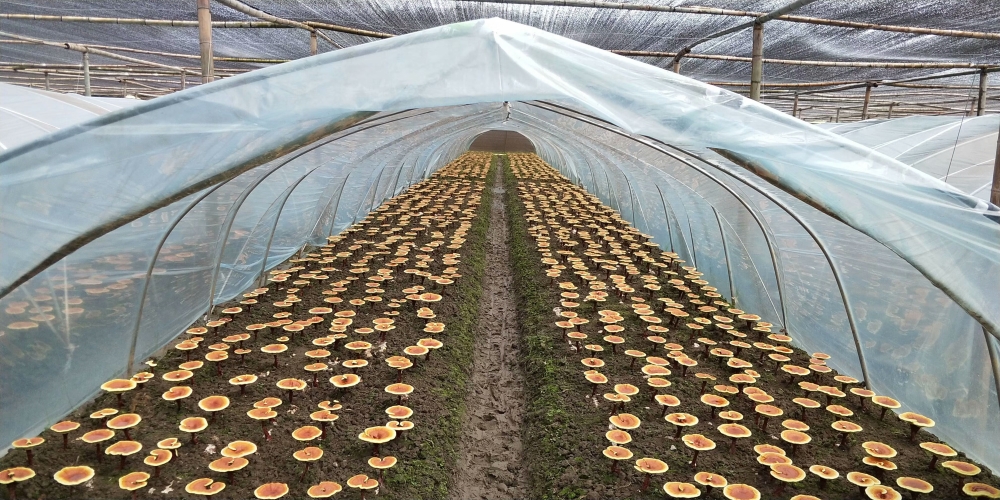 2018年,灵芝入选浙江省“新浙八味”中药材培育品种,全省形成合力,推动灵芝产业化、规范化、生态化发展。北京京诚生物在“中国生态第一市”、全国灵芝核心产区浙江龙泉,以 “公司+科研院所+合作社+基地”的创新模式,提高了生产效率,也造就了质地极佳的龙泉灵芝:朵大圆整、肉厚、色泽好、结构致密、孢子饱满、提取孢子油得率高。