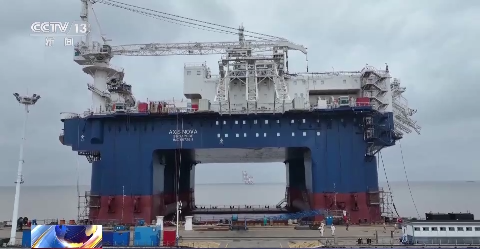 接下来是像龙门吊一样的装备,它是一个生活平台,我们可以理解它,就像建在深海上一座可以移动的酒店,满足海上作业人员休息、居住。
