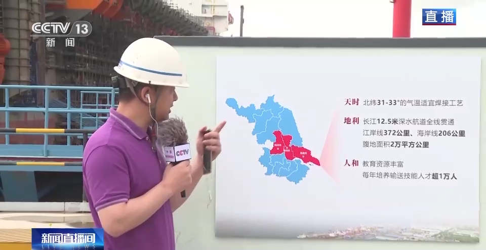 总台记者 唐高林:我现在位于长江入海口的一家船舶海工基地,高质量发展调研行的团队,正在这里调研。