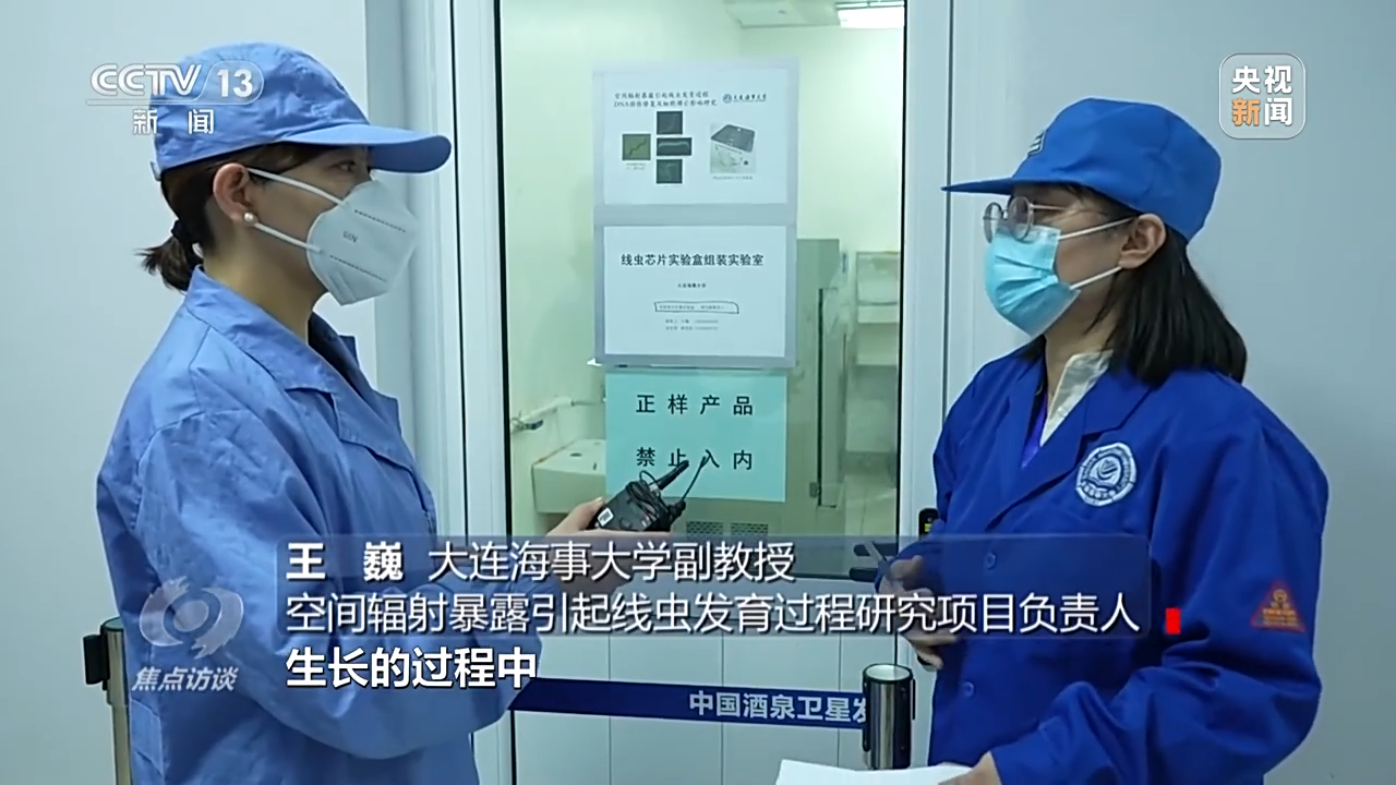 大连海事大学副教授、空间辐射暴露引起线虫发育过程研究项目负责人 王巍:我们想让线虫个体在轨发育,生长的过程中我们才能够探测到它身体对辐射环境的变化,而不是说样品上去,返回地面以后再观测,这样可能在轨效应就没有了。