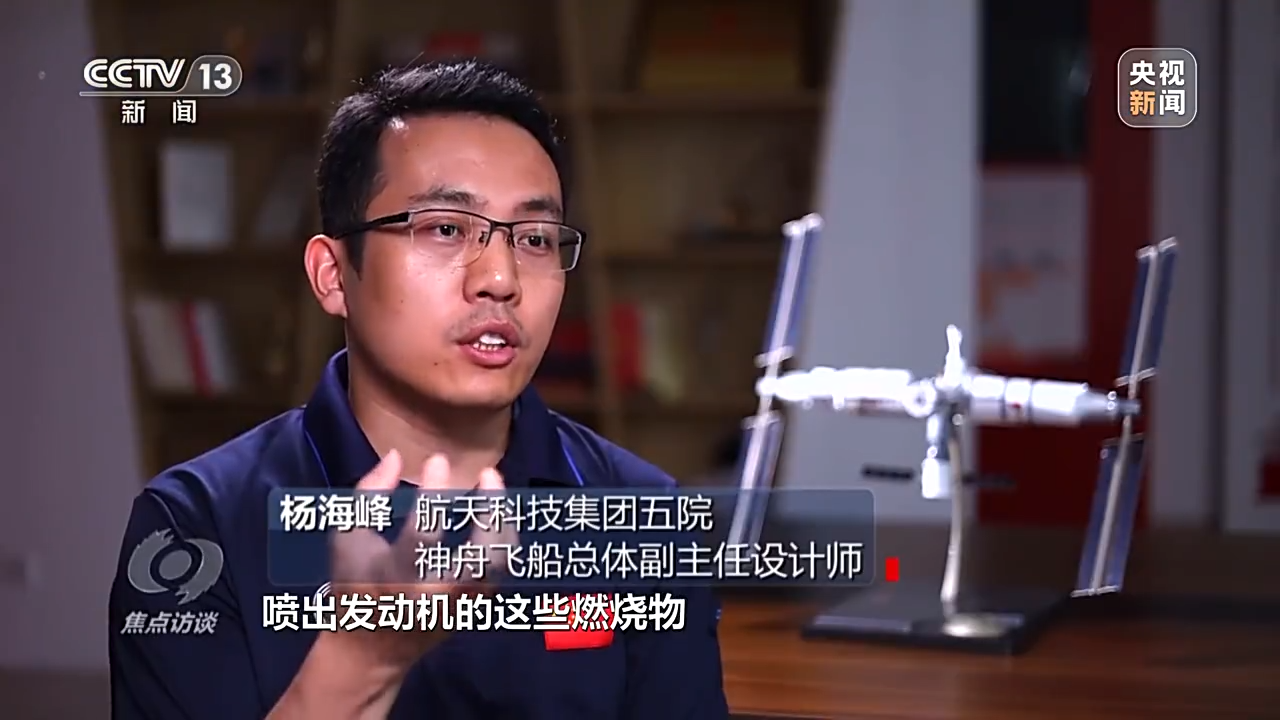 航天科技集团五院神舟飞船总体副主任设计师 杨海峰:飞船逐步逼近空间站组合体的时候,发动机会喷出一些羽流,喷出发动机的燃烧物。比如打在帆板上,我们也做了一些设置,包括帆板的一些状态设置,保证它受到羽流力的影响最小。