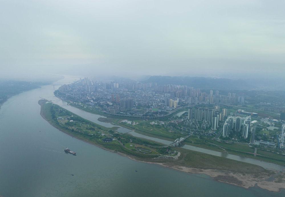 ↑长江竹岛位于长江之中,形似竹叶,与江安县城隔江相望。