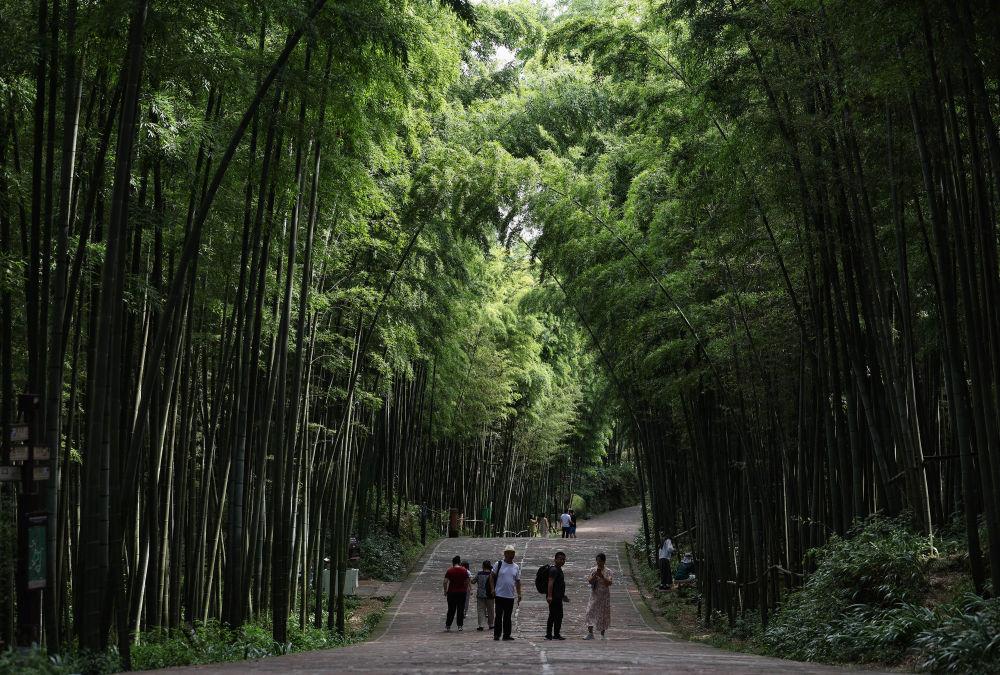 ↑蜀南竹海位于宜宾市长宁县,图为游客徜徉在竹海深处的翡翠长廊。