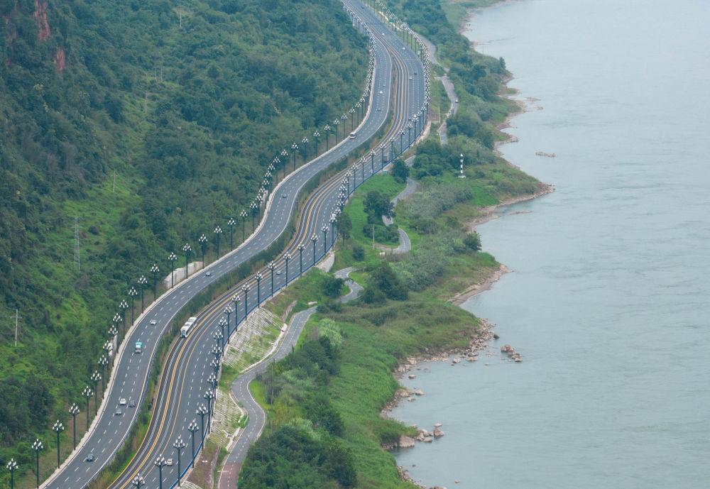↑这是宜宾市三江新区通往南溪区的智能轨道快运系统T4线,沿着长江边运行。