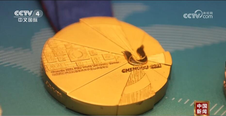 成都大运会奖牌“蓉光”。奖牌整体设计以成都大运会会徽和太阳神鸟为主要灵感,使用会徽太阳神鸟元素进行延展设计,利用不规则的扇形呈现神鸟羽翼,在表达“守护梦想”和“成都成就梦想”的同时也寓意神鸟守护天府之国。奖牌整体是不规则圆形,利用几何扇面代表太阳光芒,传递太阳神鸟守护梦想的设计概念。奖牌以“蓉光”为名,谐音为“荣光”,寓意荣耀、光彩,寄托对大运健儿在成都青春展翅、乘梦而行的美好期许。