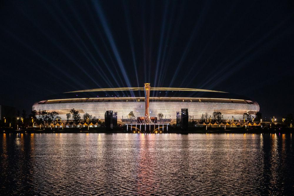 ↑大运会主体育场及主火炬(无人机照片)。新华社记者沈伯韩摄
