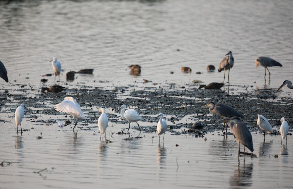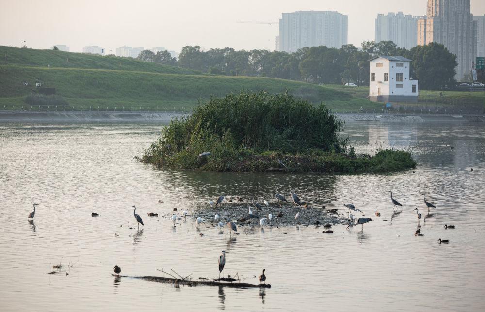 ↑众多鹭鸟栖息在成都市锦江中。新华社记者江宏景摄