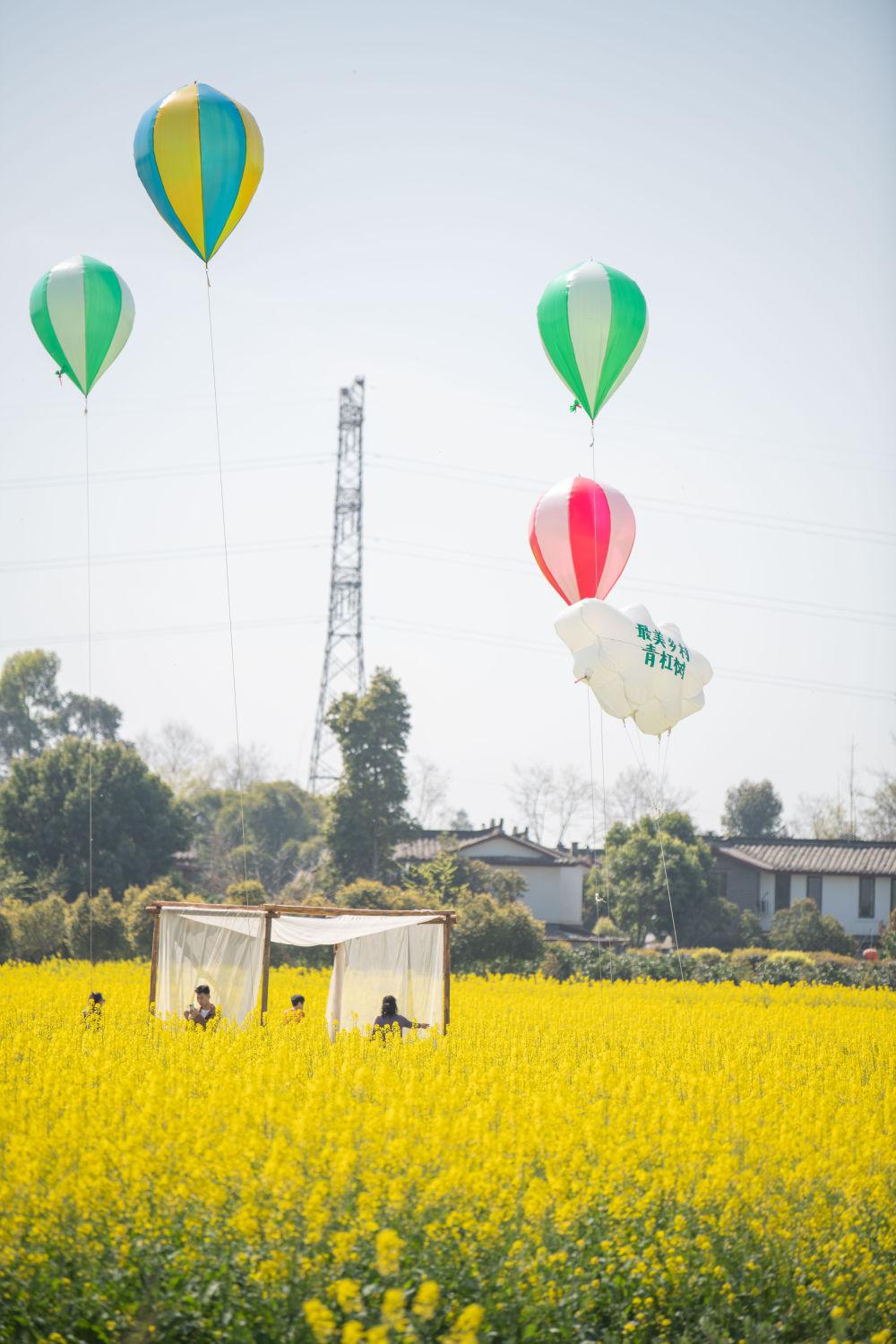 村民在郫都区青杠树村油菜花田里玩耍。新华社记者胥冰洁摄