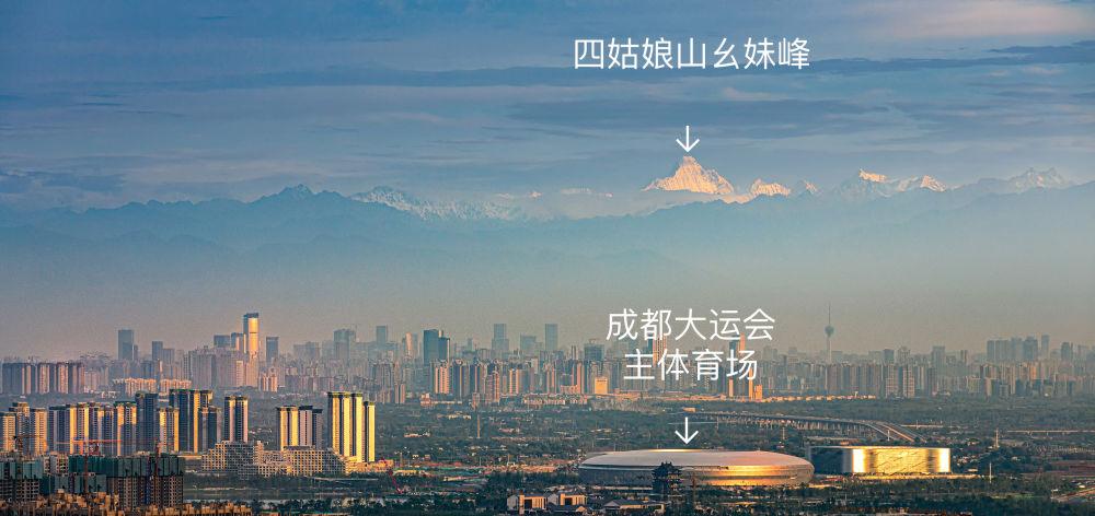 ↑大运会主体育场与远处的雪山。新华社发(嘉楠摄)