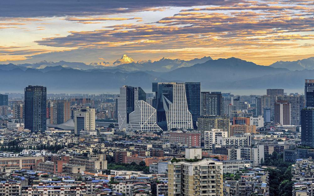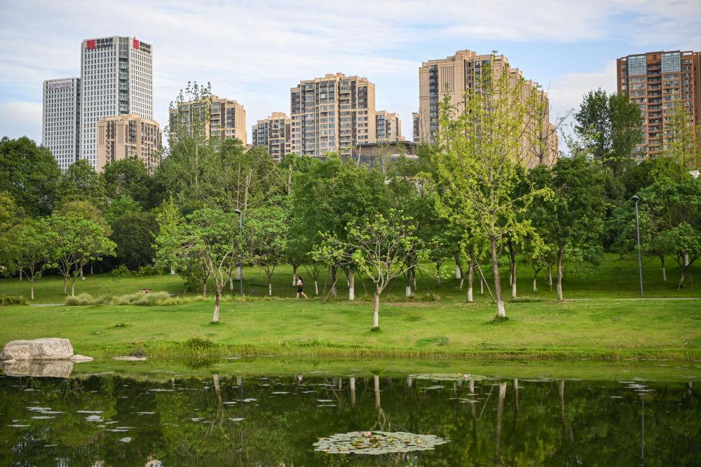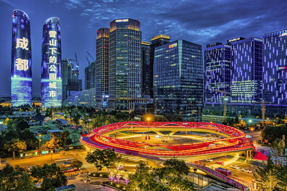 ↑成都市交子公园和天府国际金融中心建筑群。新华社发(杜睿嘉摄)