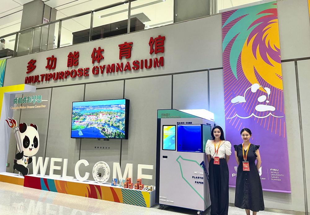 ↑位于主媒体中心、大运村等多个场地的“低碳魔方”