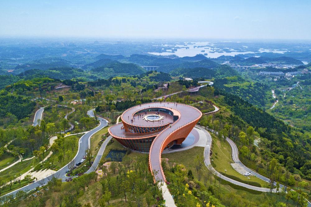 ↑成都龙泉山城市森林公园的被称为“城市之眼”的丹景台。(胡大田摄)