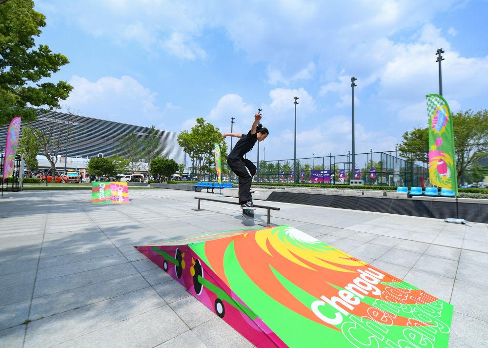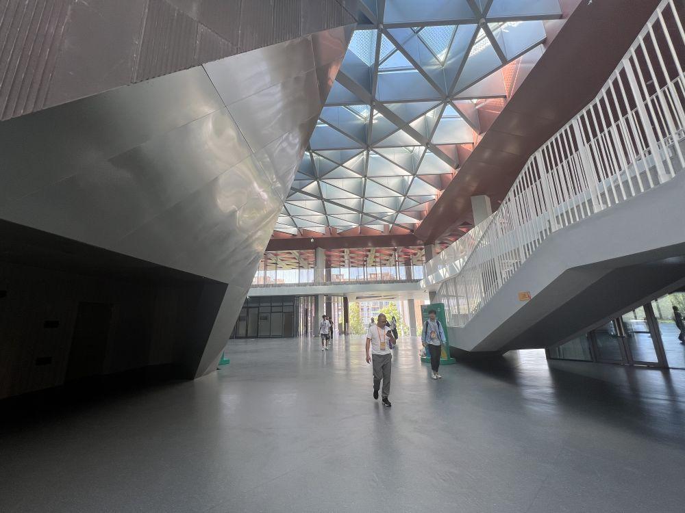 ↑采用根据空气动力学设计“冷巷”理念的成都大运会运动员村生活服务中心,能够在炎热的夏天保持良好的通风。新华社记者康锦谦摄