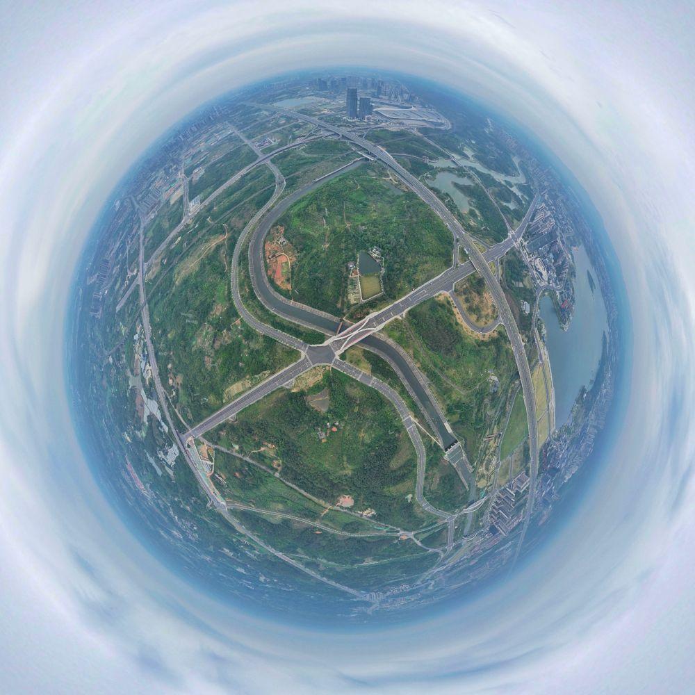 ↑成都市锦城湖公园和附近的亚洲第一大单体建筑——新世纪环球中心(右上)。新华社发(杜宁摄)