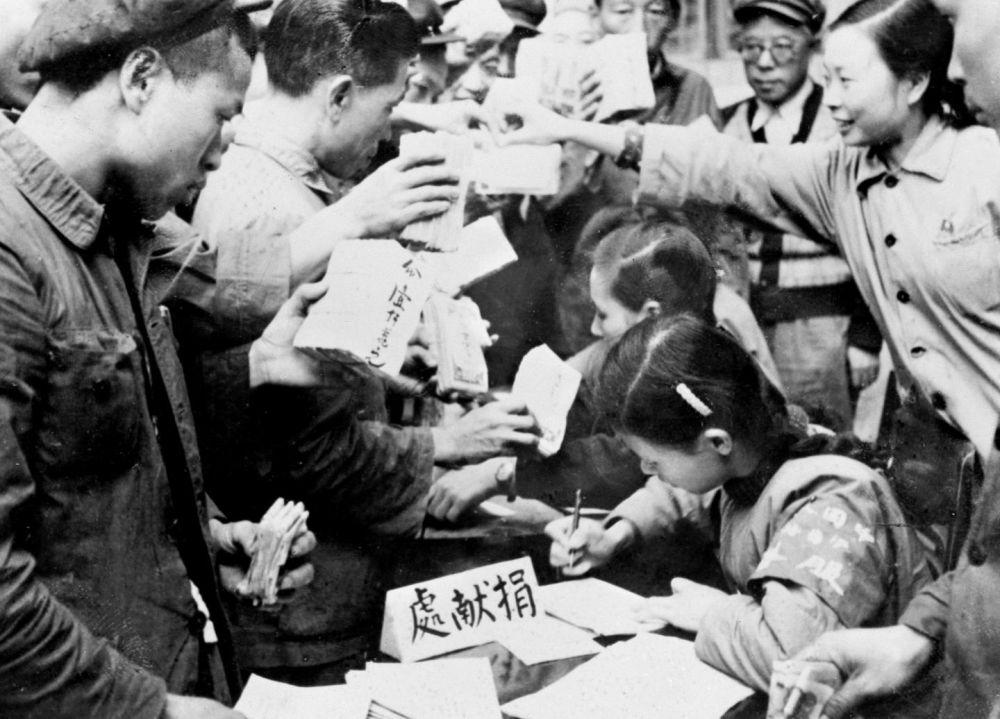 ——知识分子为支援前线的爱国事业鼓与呼,医务工作者组织大批医疗队奔赴前线,“为最可爱的人购买飞机大炮”的捐款热潮席卷了每一个社会层面、每一个社会角落……