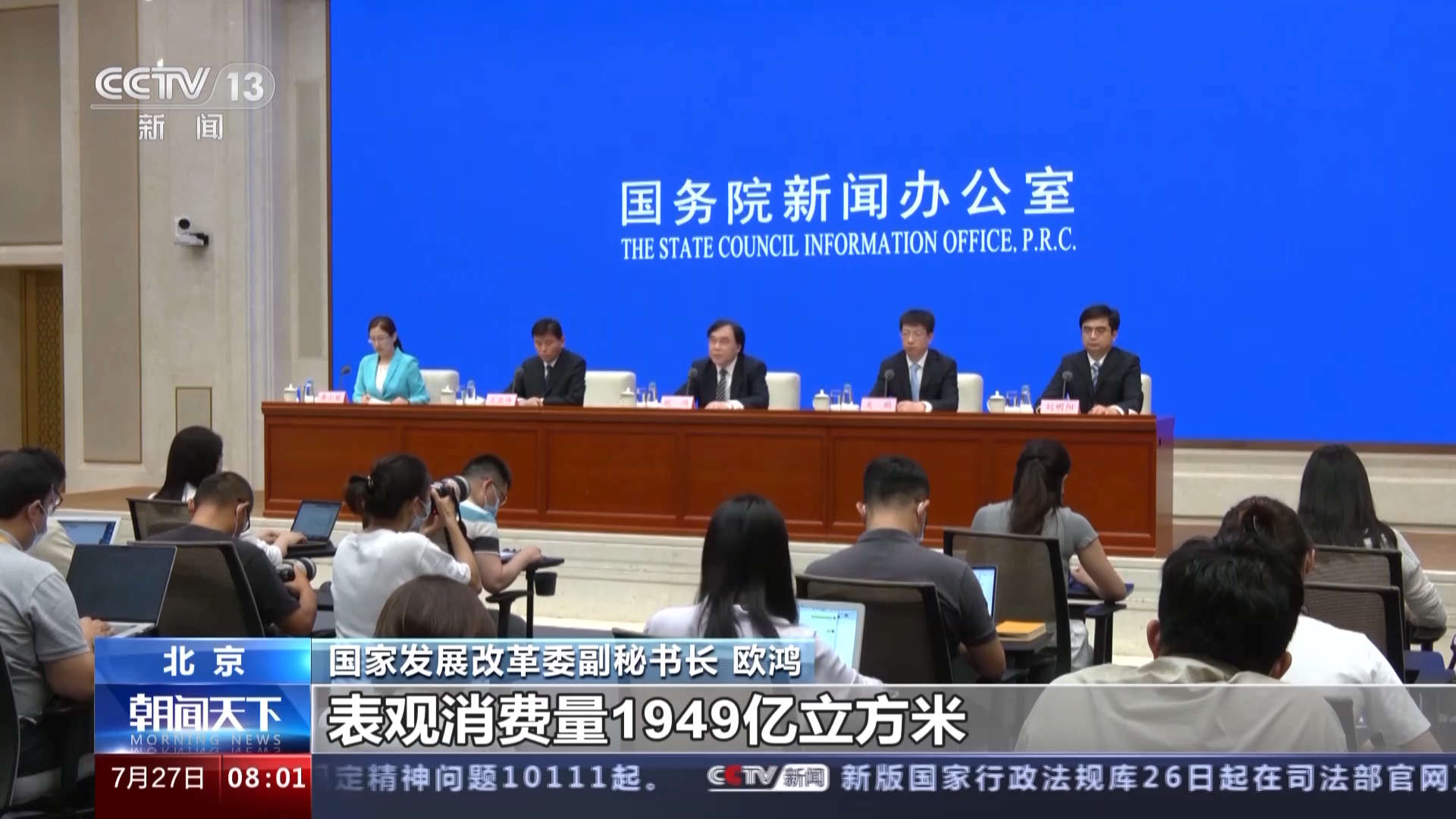 国家发展改革委副秘书长 欧鸿:据调度统计,上半年全国天然气表观消费量1949亿立方米,同比增长6.7%。入夏以来,单日最高发电用气超过2.5亿立方米,有力支撑了气电顶峰出力。