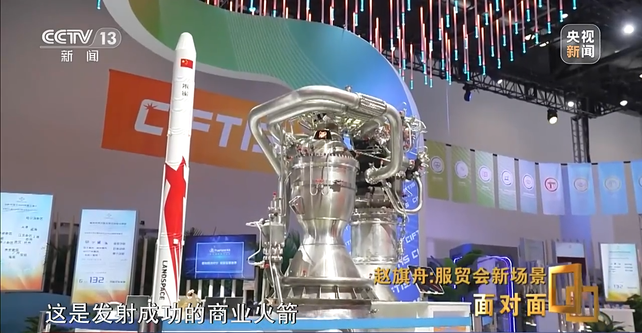北京市国际服务贸易事务中心主任 赵旗舟:在成就展展区,可以看到目前服务贸易领域和服务业扩大开放领域一些最新取得的进展。比如展出了发射成功的商业火箭,用的是液氧甲烷的助推器,我们推动它在服贸会平台上取得更多合作。