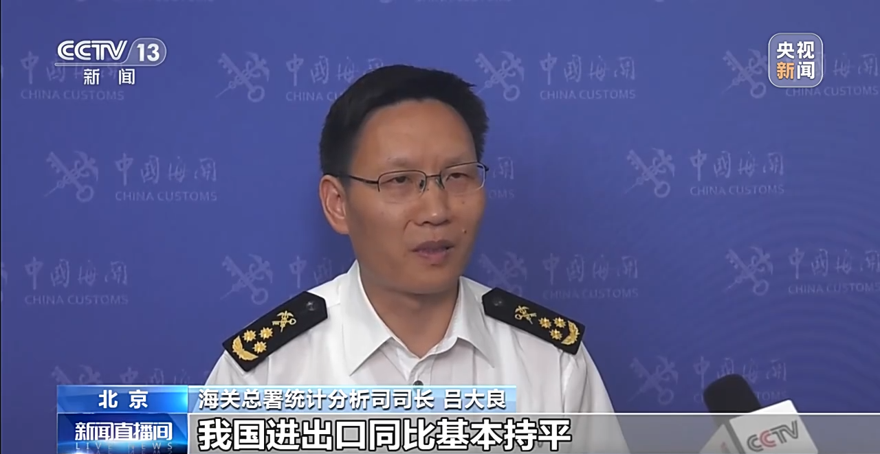 海关总署统计分析司司长 吕大良:今年前8个月,我国进出口同比基本持平,8月份近3.6万亿元的进出口规模,较2020—2022年同期均值增长8.2%。这一规模,从今年月度数据看,从历史同期数据看,都是第二高点,我国外贸运行总体平稳。