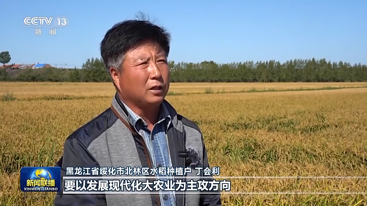 黑龙江省绥化市北林区水稻种植户 丁会利:习近平总书记指出,要以发展现代化大农业为主攻方向,加快推进农业农村现代化,总书记讲话给我们农民鼓足了干劲。我们要不断提高农业生产种植水平和效率,多打粮、打好粮,用粮食的丰产丰收提供东北振兴的基础保障。