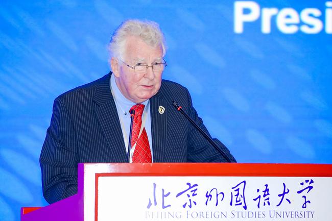 王定华指出,大学是人类社会文明进步的产物,也是人类社会文明进步和科技创新的重要推动力。现代大学与现代文明相互促进、相得益彰,应勇担全球文明发展使命,成为全球文明的积极践行者、推动者。一是要对话全球文明。对话是增进国际理解、促进民心相通的有效渠道。全球文明论坛就是北外打造的不同文明对话平台,旨在深化中外交流、增进各国人民友谊、推动构建人类命运共同体。我们要整合多元力量,努力打造全球文明大团结、大联合的生动场景。二是要研究全球文明。我们对世界文明的研究才刚刚起步。北外将围绕全球语言、全球文化、全球治理三大领域,积极推动建设区域国别学为“大国之学”“时代之学”“经世之学”,为人类命运共同体构建和全球文明实践提供学科支撑。三是要语通全球文明。国际语言能力是我们开展文明对话、促进文明互鉴的基本前提。北外要发挥语言优势,坚持语通中外、道济天下,努力培养更多有家国情怀、有全球视野、有专业本领的复合型人才,为推动中国更好走向世界、世界更好了解中国作出新的更大的贡献。四是要感知全球文明。增进国际理解是一项需要中外双方充分交流互动的民心行动。我们要加强青年学生的国际理解教育,在新时代青年心中打牢相互尊重、相互学习、热爱和平、维护正义、共同进步的思想文化根基。要积极鼓励学生赴世界各国大学和研究机构深造,努力打造“留学北外”品牌,让留学生在这学得好、回去用得上,成为中华文明与世界文明交流互鉴的人文纽带。五是共绘全球文明。全球文明是一张宏大的人类社会美好蓝图。全球文明论坛为传播和发扬中华文化、促进世界各国文化交流,搭建更加广阔的对话平台。我们期待将论坛一届一届办下去,办出成效、办成品牌,把富有友好性、建设性的论坛成果传播好、运用好,为推动世界文明交流互鉴、构建人类命运共同体,汇聚中国智慧、国际力量。