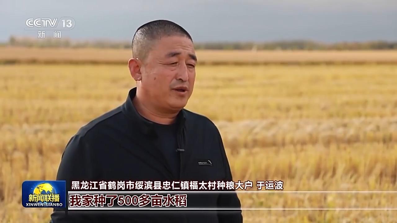 黑龙江省鹤岗市绥滨县忠仁镇福太村种粮大户 于运波:我家种了500多亩水稻,产量(比)去年一垧地得增加半吨。