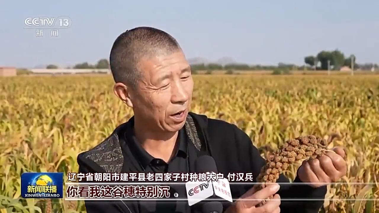 辽宁省朝阳市建平县老四家子村种粮大户 付汉兵:你看我这谷穗特别沉,颗粒特别饱满,看效益今年比每年应该每亩地(收入)多增加四五百块钱。