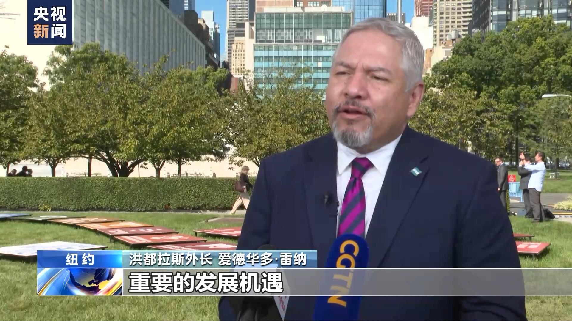 洪都拉斯外长 爱德华多·雷纳:(中国的)倡议为世界各国提供了重要的发展机遇,特别是加强发展中国家的相互合作,这是不同于过去的新的发展机遇。