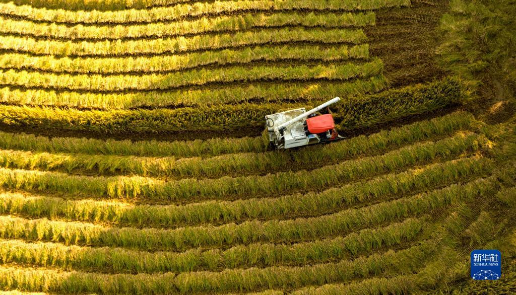 伴随着“轰隆隆”的轰鸣声,农户们驾驶着农机穿梭田间,将一串串饱满的果实收入“囊中”,田间地头呈现一派收获的好“丰景”。