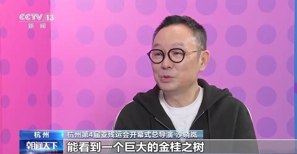 杭州第4届亚残运会开幕式总导演 沙晓岚:能看到一个巨大的金桂之树,树干包括支脉都是AR(增强现实技术)做的,还可以看到大莲花体育场变成了一个非常唯美的金桂花的藤蔓。