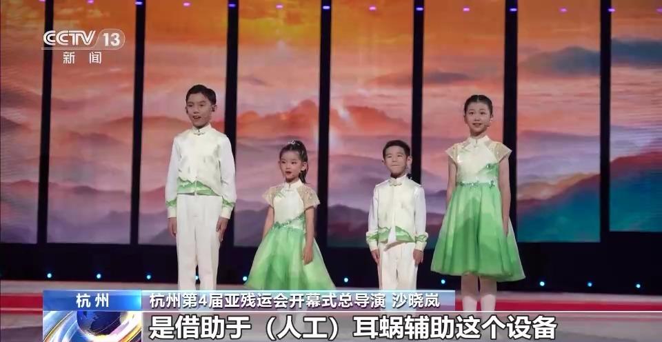 杭州第4届亚残运会开幕式总导演 沙晓岚:领唱的也是残疾儿童,借助于人工耳蜗辅助设备,他们才能听到,才能把他们心里的歌唱出来。其实在录音的时候非常感动,一开始“一条大河”的时候,断断续续唱出来,尽管声音不完美,但是歌声是那么令人感动。