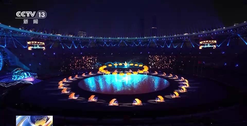 除了现场观众可以亲身感受开幕式震撼效果外,导演组还通过AR、数实融合等技术手段将演出画面进行丰富,使电视机前的观众也同样有很好的视觉效果。