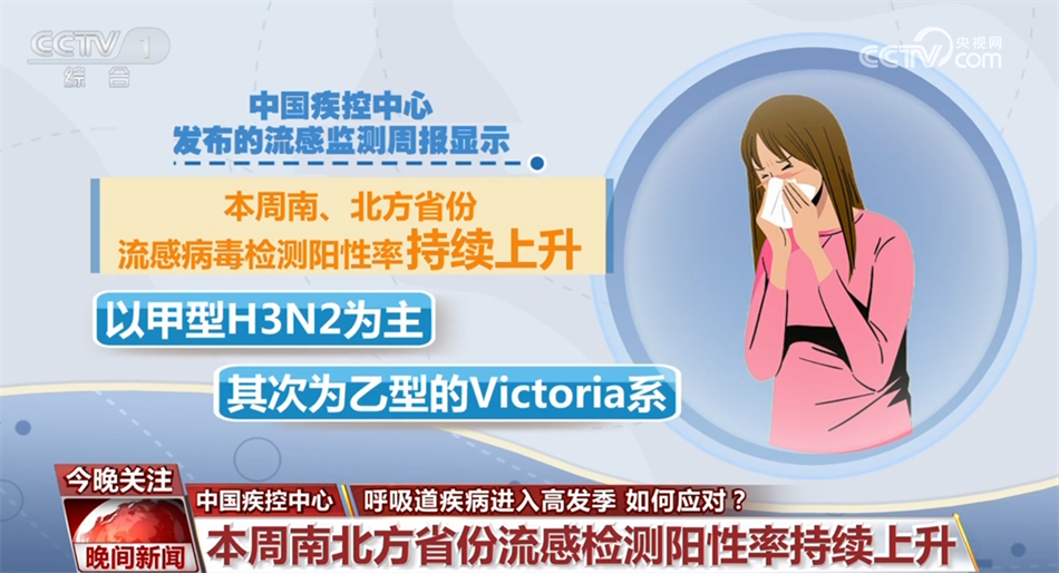 中国疾控中心发布的流感监测周报显示,本周南、北方省份流感病毒检测阳性率持续上升,以甲型H3N2为主,其次为乙型的Victoria系。