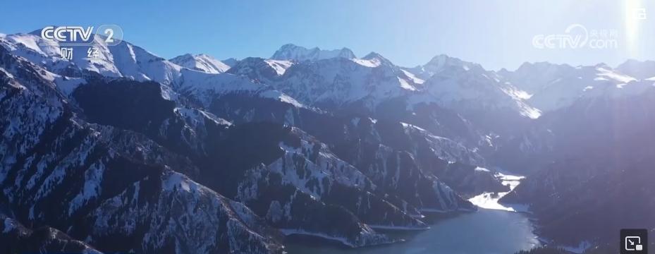 初冬季节,新疆阜康天山天池景区银装素裹。湛蓝的天空下,雪山与雪岭云杉交相呼应,波光粼粼的湖面映照着皑皑白雪,游客们宛如置身冰雪世界。