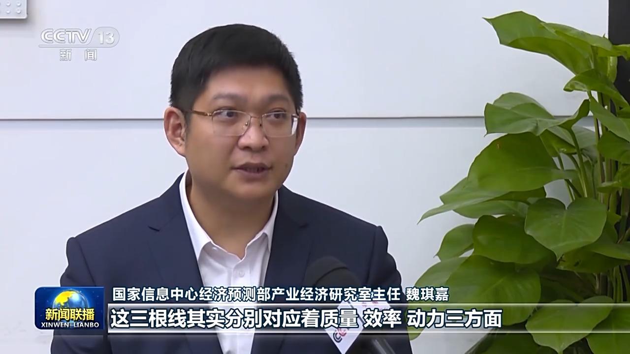 “这三根线分别对应着质量、效率和动力,从不同侧面反映了中国经济质的变化。从它们的走势上看,都保持了持续增长。这也表明,质量变革、效率变革、动力变革推动下的中国经济高质量发展的步伐更加坚实有力。”