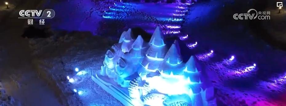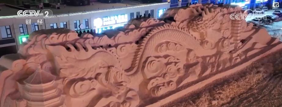 吉林梅河口:雪雕造型多变 五光十色映雪街