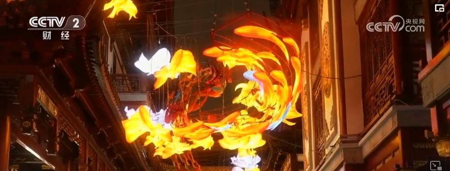 这两天,豫园灯会龙灯全新上线,各类包含龙元素的灯组亮相。其中,这组主题灯组抬眼望去,多彩的鱼群汇成游龙回旋的姿态,在飞檐斗拱之间艳丽灵动。游客们穿行于亭台楼阁间,或驻足赏灯,或拍照留念,感受节日的氛围。