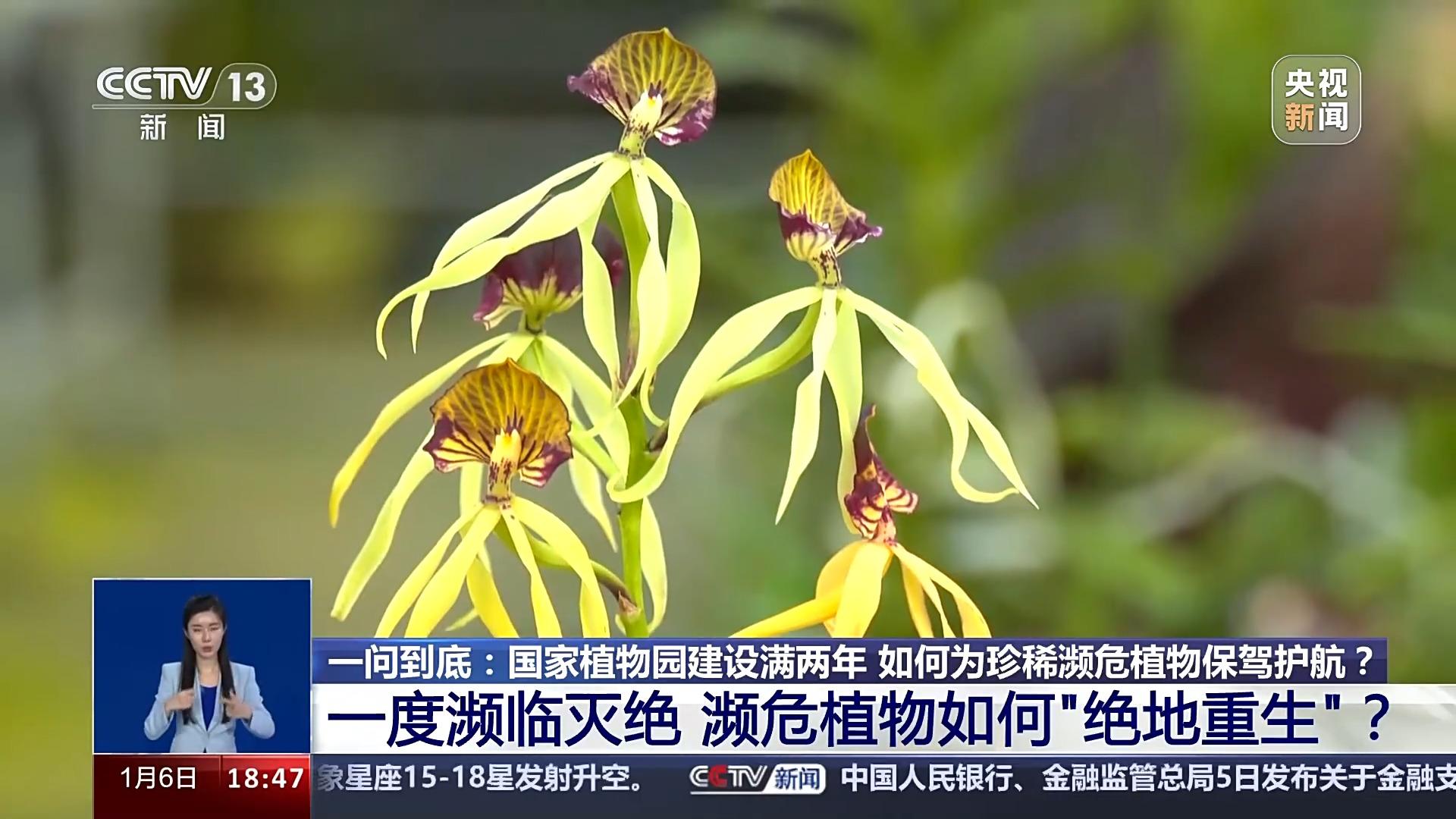 国家植物园(北园)工程师秦嘉泽:它在野外是属于濒危的一个状态,当下,我们已经成功建立了这个杓唇石斛的人工繁殖技术体系,然后也成功繁育出了1000多株幼苗。