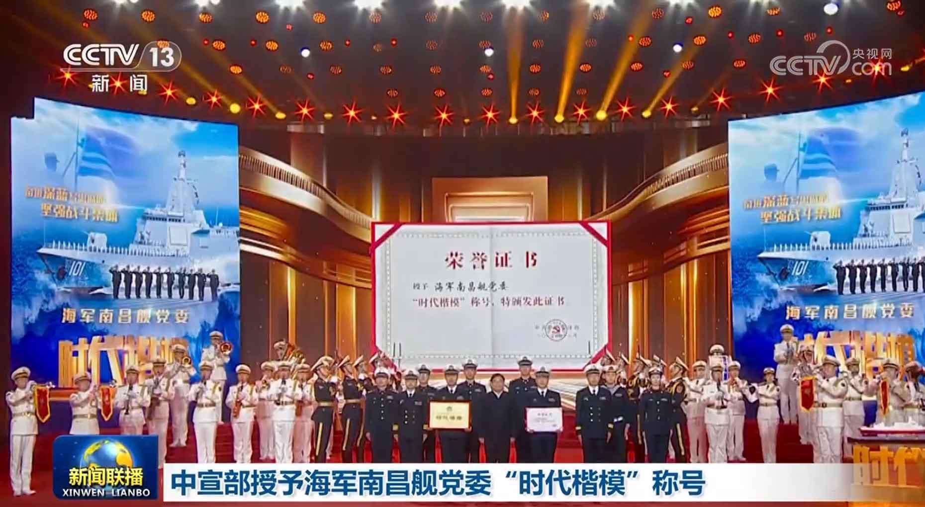 央视网消息(新闻联播):中共中央宣传部今天(1月7日)授予海军南昌舰党委“时代楷模”称号。海军南昌舰是我国自主研制的055型导弹驱逐舰首舰,2020年1月入列服役以来,舰党委深入学习贯彻习近平新时代中国特色社会主义思想,贯彻习近平强军思想,聚焦党在新时代的强军目标,团结带领全舰官兵传承英雄精神、厚植先锋底色,加速备战转型、锻造一流标杆,参与执行航母编队战备训练等10余项重大任务,开创了人民海军史上多个第一。今晚,总台央视综合频道播出的《时代楷模发布厅》栏目将讲述他们的先进事迹。