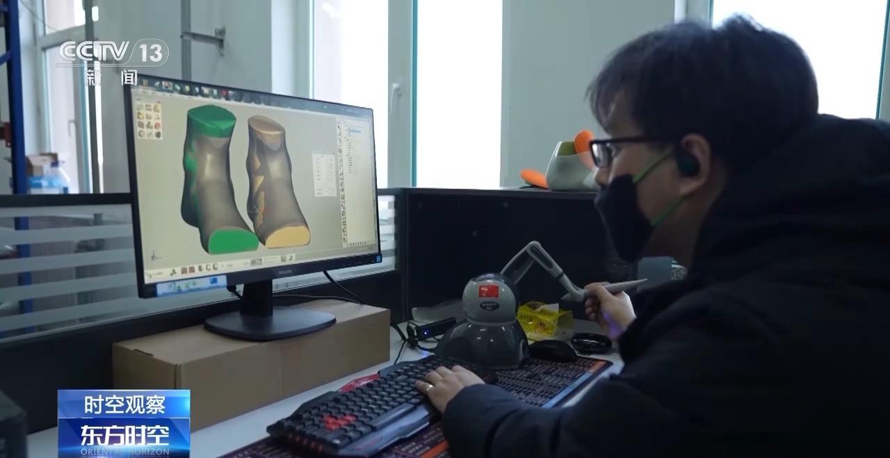 七台河某运动装备企业技术人员 李伟:现在这种定制的订单特别多,它的特点就是采用碳纤维(材料),包裹性和透气性非常好。