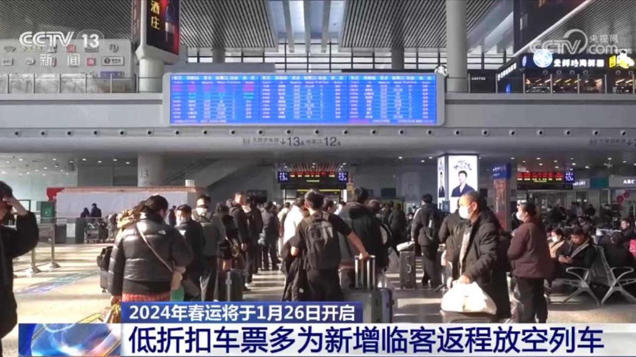 2024年春运将于1月26日开启。相关部门加大运力供给,全力满足旅客出行需要,同时充分利用运力资源,部分返程放空列车推出了低折扣票价,满足不同旅客出行需求。