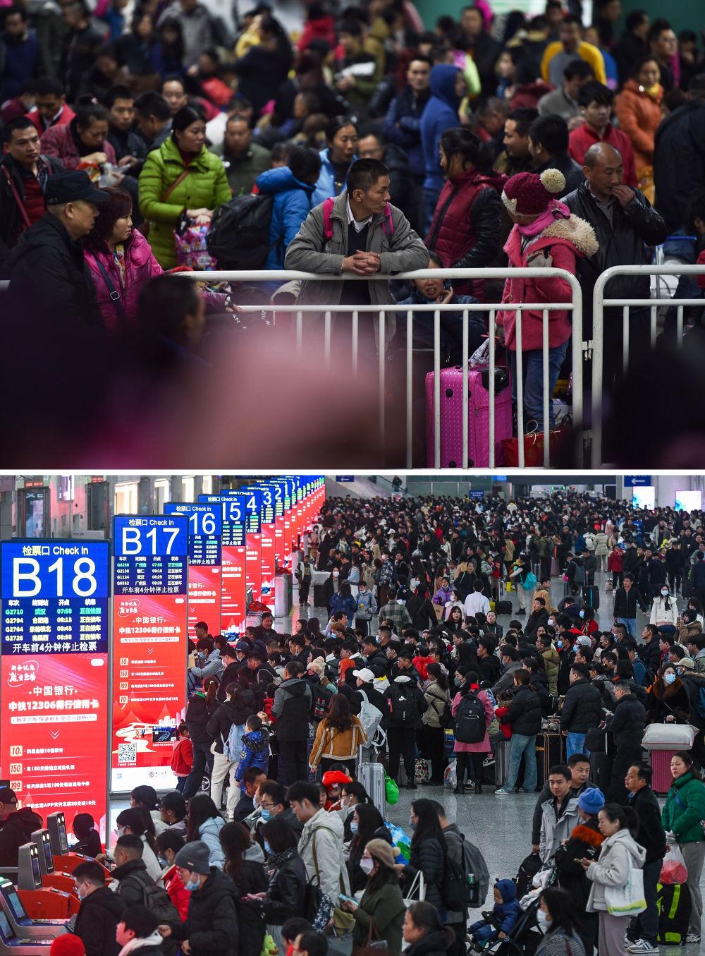 上图:2016年2月2日,旅客在深圳火车站等待进站上车。新华社记者 毛思倩 摄