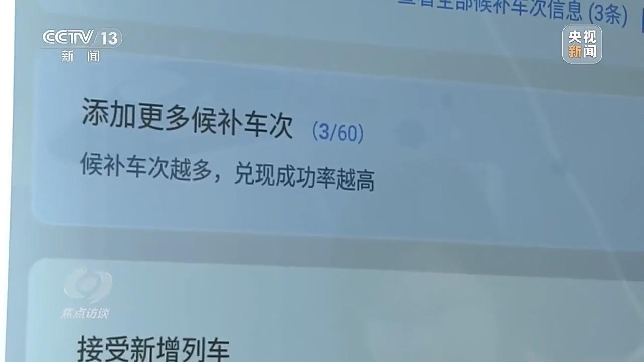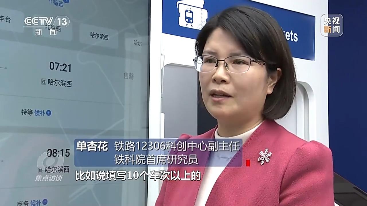 铁路12306科创中心副主任、铁科院首席研究员 单杏花:从目前已经开车的情况来看,只要是填写候补车次越多,比如填写10个车次以上的,兑现成功率能达到80%以上。