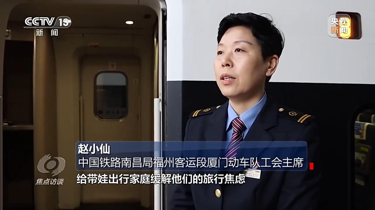 中国铁路南昌局福州客运段厦门动车队工会主席 赵小仙:“遛娃舱”设置的初衷就是缓解带娃家庭的焦虑,让孩子的天性在旅途中得到释放。同时也可以提升全车旅客的乘车体验。