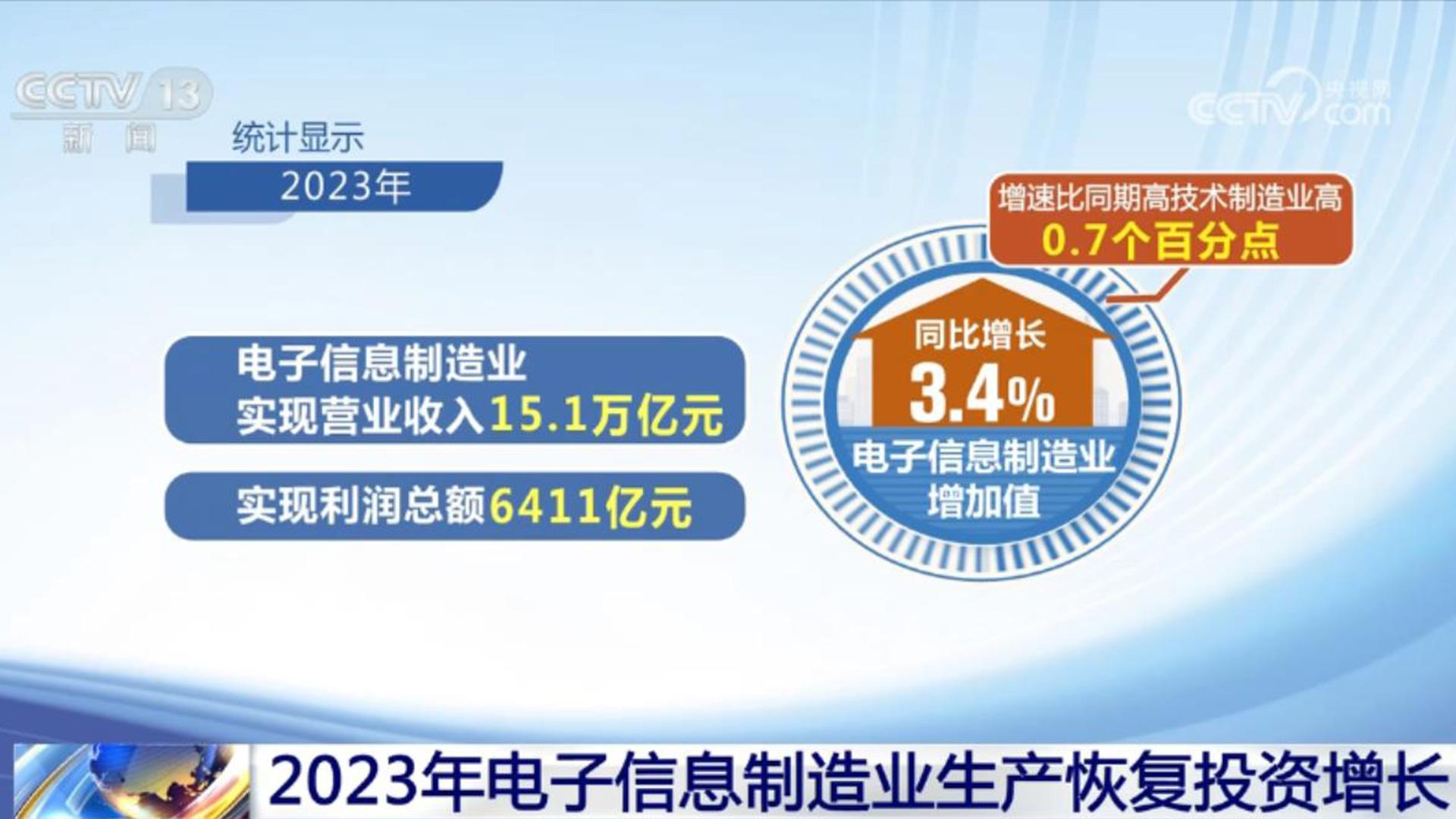 数据显示,2023年我国电子信息制造业生产恢复向好,效益逐步恢复,投资平稳增长。