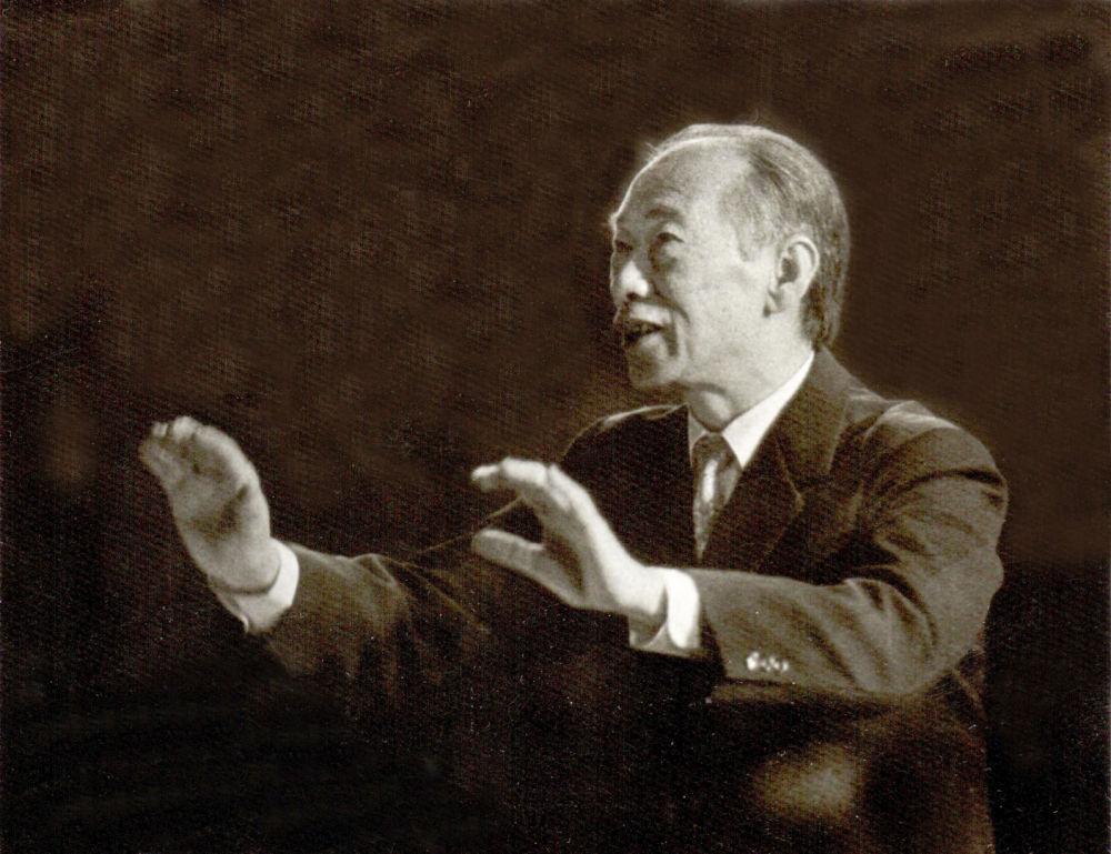 1985年2月,李焕之在指挥合唱节目。李大康供图