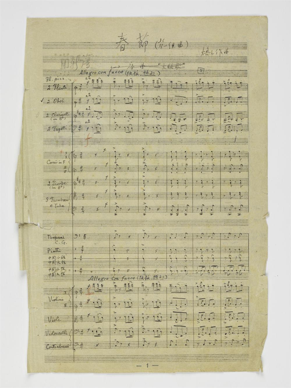 李焕之1955年创作《春节组曲》的 手稿第一页。李大康供图