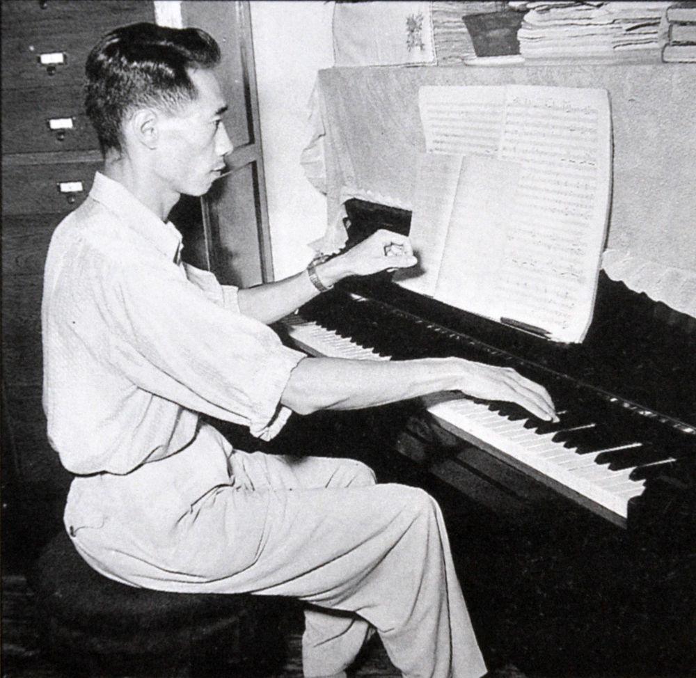 1954年6月李焕之在北京家中构思创作《春节组曲》。李大康供图