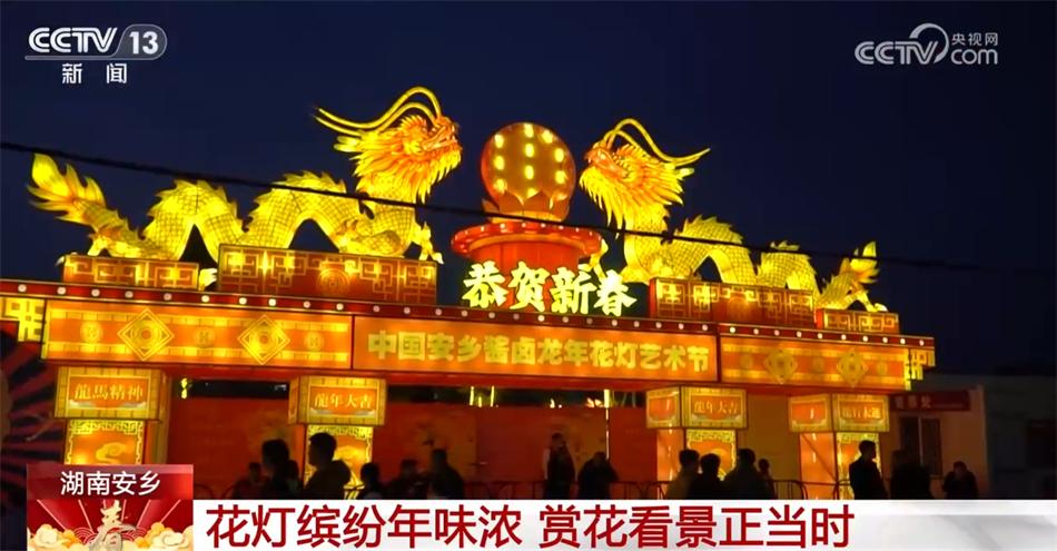 在湖南常德安乡县,当地开展了缤纷多彩的文旅系列活动。彩灯闪烁、游人如织,各种美食让人垂涎欲滴,舞台表演也让游客们沉浸在一片欢乐的氛围中。在花灯展区,各式花灯如梦如幻、相映成趣、闪耀夜空。