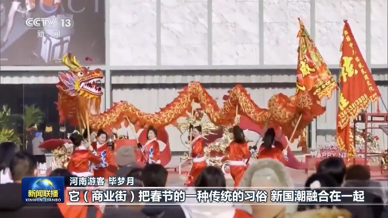 河南游客 毕梦月:商业街把春节的一种传统的习俗、新国潮融合在一起,很时尚,这种东西我们年轻人也会更加喜欢。